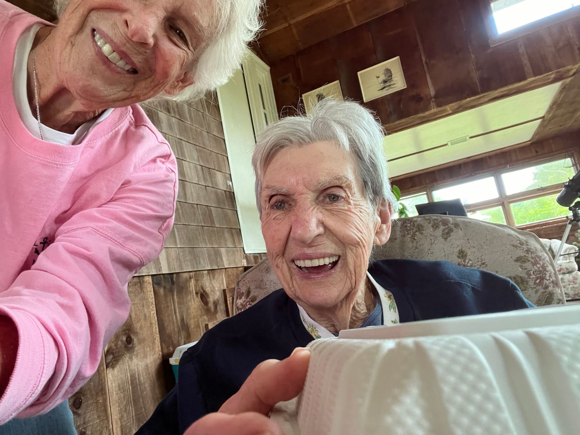 But my two favorites are the chatters! One, who is deaf, uses a wonderful device that she points at me while we chat. She always looks up when I arrive and says “Oh, good! It’s you!” That, alone, is worth the whole trip!