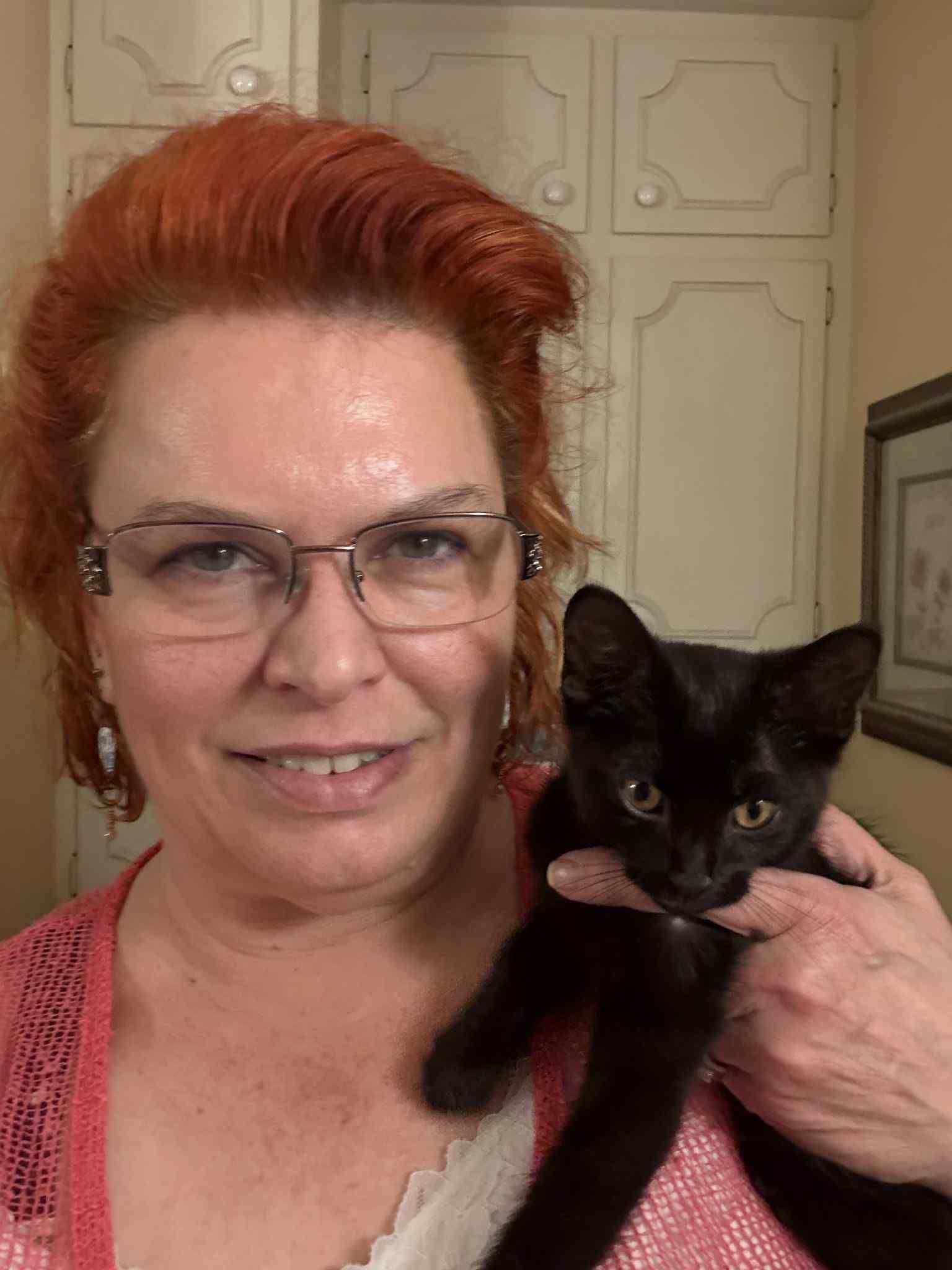 Several of us jumped into action, driving to the nearest Walmart and purchasing kitten food and litter. We set the kitten up in the farmhouse bathroom and started calling her Muffin. I took her home Sunday. On Monday, I took her to the vet for an exam. The sore on her jaw is called a lip avulsion and happens, the vet said, when kittens are thrown from cars. She is having surgery today to attempt to re-cover the exposed bone with the remaining skin.