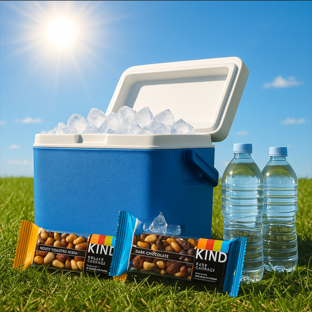 During these hot summer days, I worry about those who have to work outdoors. And no one works harder in this excruciating heat than the landscapers who show up once a week. They edge and cut and trim the tiny yards in my Estero neighborhood. Yes, I know they get water from the orange container but on a hot day, it’s nice to have a cold, almost frozen, bottle of water and I add in a selection of health bars.
