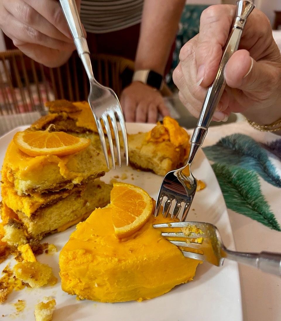 Today I bought three pieces of my favorite cake in the whole world: Orange Crunch Cake at the Bubble Room on Captiva Island. It is an effort to get this cake (it’s an hour drive) but it is worth every bite. I got a piece for my son and his girlfriend and two more pieces for friends.I surprised my friends with the cake tonight and it made them so happy. Eating cake with friends is a delicious kind of kindness that instantly brightens someone’s day.