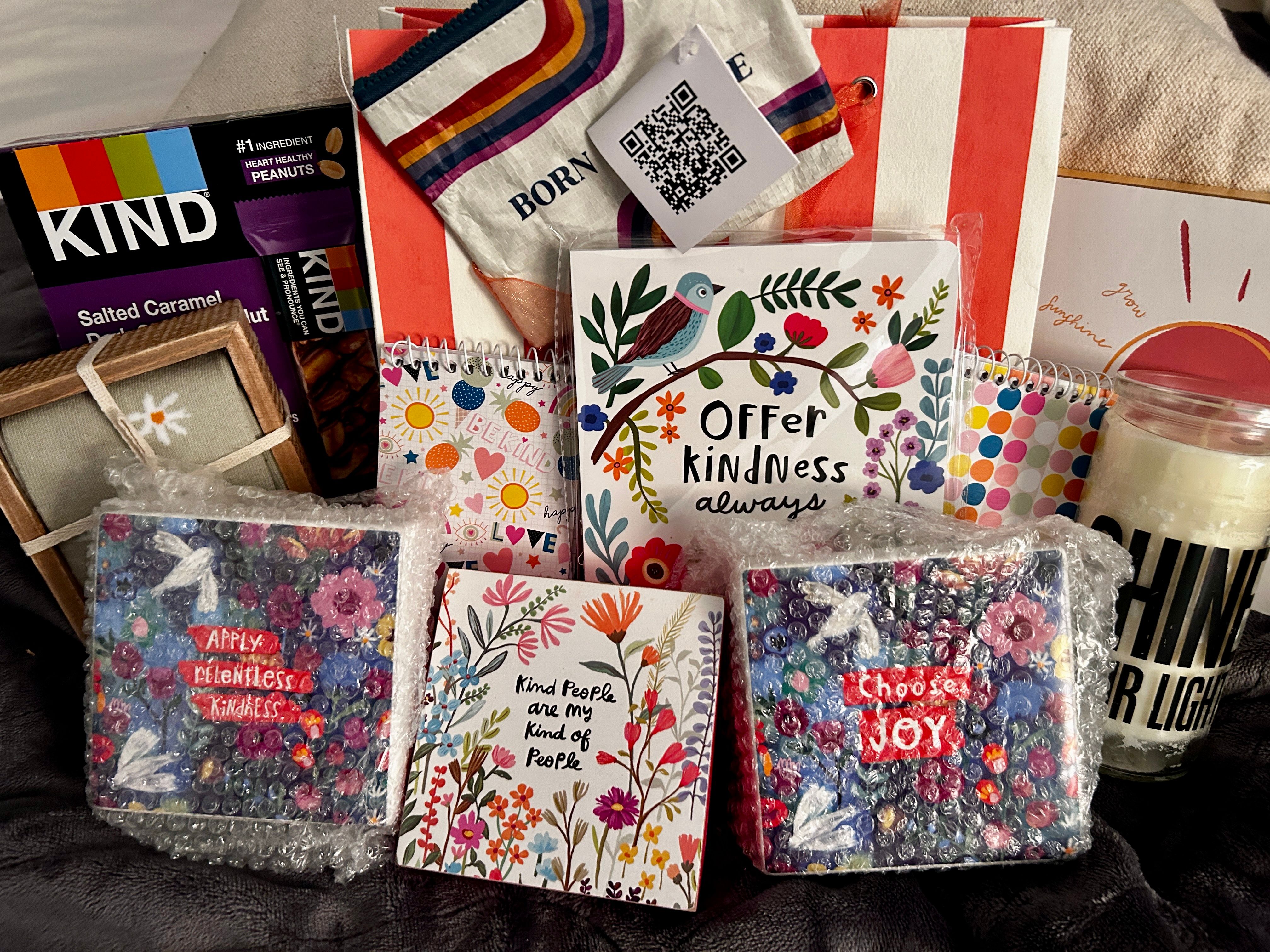 The local YMCA is having a fundraiser for a boxing program for those managing Parkinson’s Disease. As it happens, I have a stash of kindness swag - so I put together a little basket full of all things kindness. I’m guessing there won’t be any other raffle prizes quite like it!