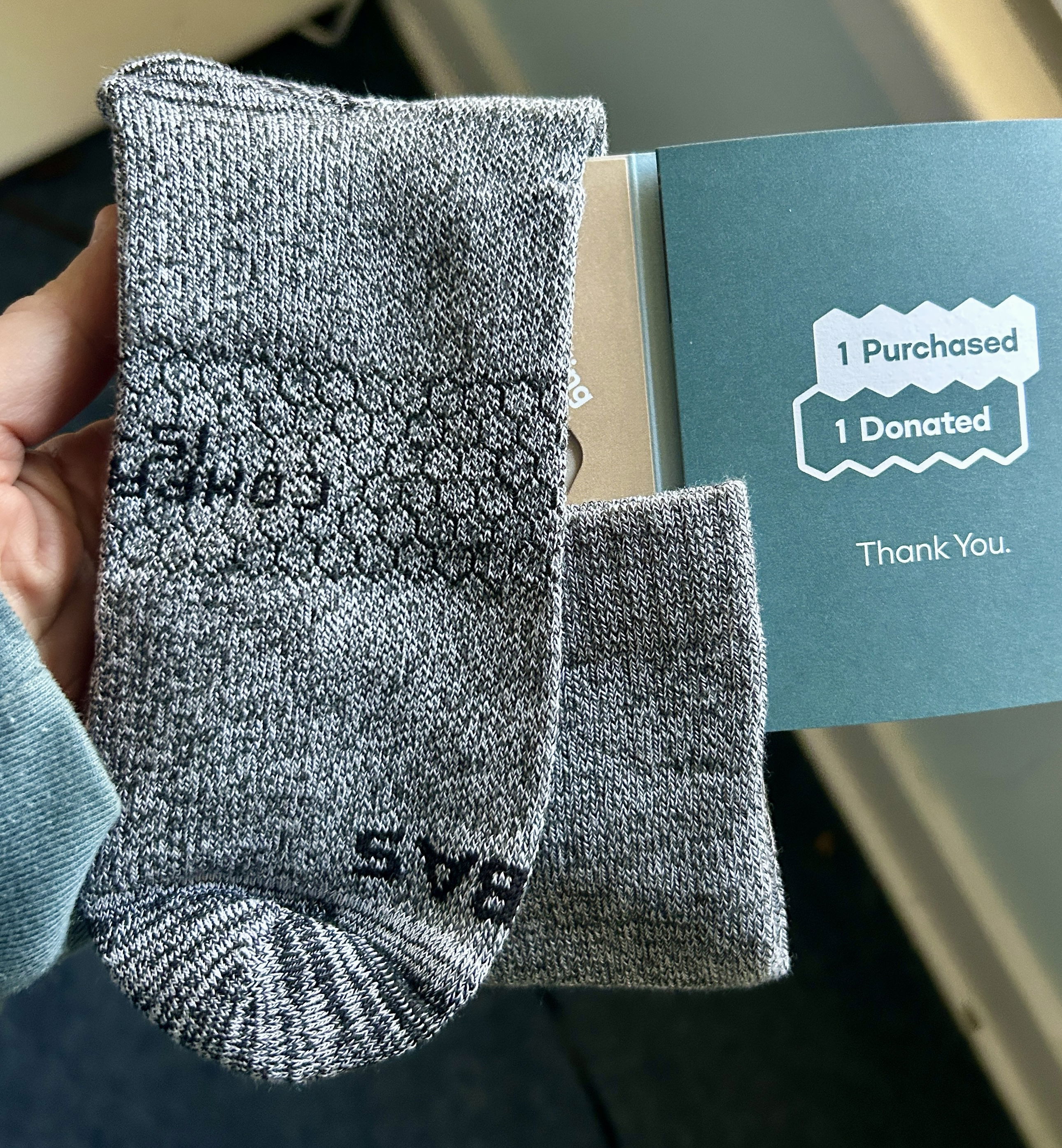 I needed some compression socks for my swollen ankle, so I bought some Bombas. I’ve heard good things about the product but didn’t know much about the company’s values. I learned that every pair of socks I buy, the company donates another pair. Plus, it turns out that the company has a Customer Happiness Team that they describe as “a bunch of the best, nicest, most awesome human beings we could find to help with anything you need.” They had me at happiness.