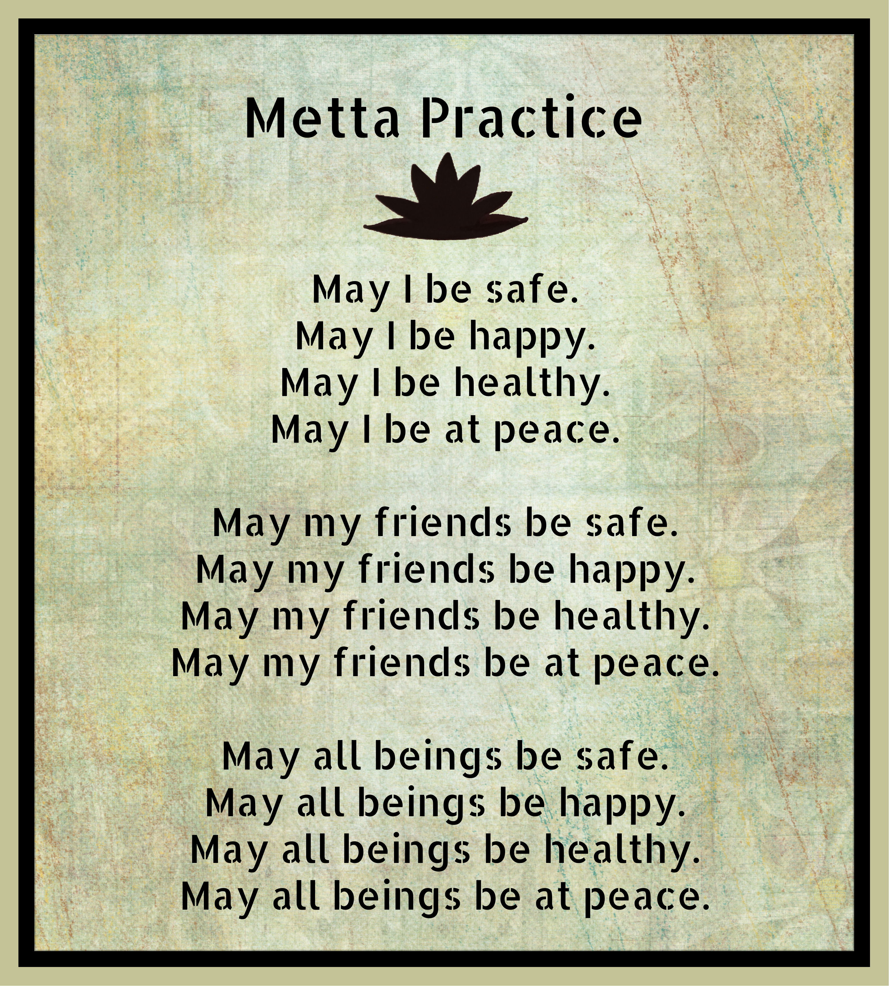 My hurt and mental rehashing of our ending has quieted. If my thoughts go back to unconstructive inner dialogue, I remember the Metta Prayer and am armed with kindness and compassion, which once again quiets my mind.